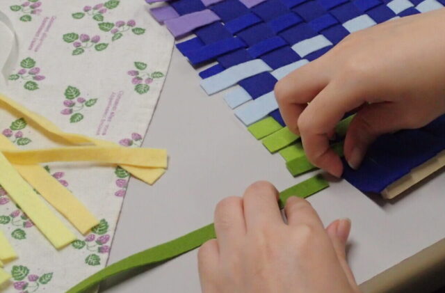今回のアートは「思い出タペストリー」。思い出を布地に託して、ひとつひとつ振り返っていくプログラムで、年末や何かの節目の時期には特にマッチするアートです。